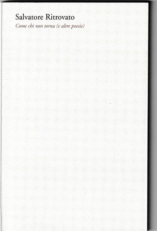 Infine, Salvatore Ritrovato, in Come chi non torna (e altre poesie), nel rincorrere il senso, semina il dubbio, in questo mettendosi sulla scia della poesia che (giusto il suo etimo) si fa perché mai ferma al narrare solo il quotidiano, una modalità, questa, diffusa, ormai con ripetitività finita in secca, in questi due decenni del Duemila.