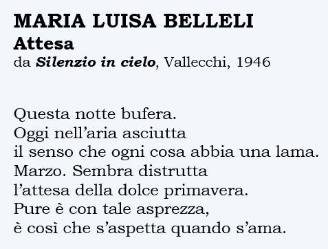 Maria Luisa Belleli è poeta immeritatamente dimenticata, per cui dobbiamo essere doppiamente grati a uno studioso come Dario Pisano che nella sua bacheca, qui su FB, spesso la ricorda, mantenendone comunque viva la memoria.