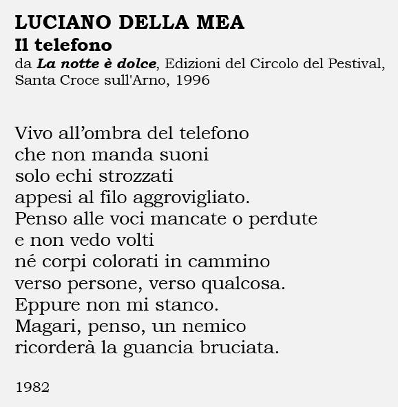Oltre a vari libri di saggistica politica e letteraria, ne ha lasciato uno che raccoglie poesie scritte fra il 1978 e il 1995: «La notte è dolce», Edizioni del Circolo del Festival, Pontedera, 1996. Cito dall’introduzione di Dino Carlesi: «La poesia di Luciano nasce per esigenza sanguigna, non esiste intermediazione letteraria, la poesia si fa tutt’uno con l’emozione e l’intelligenza che la genera e la guida». E poi: «Raramente capita di leggere una poesia che nasca così martoriata di vita, così intrisa di cronaca affettiva e di polemica cosmica. Il male è grandioso come lo è il salto di una cavalletta “prima d’andar a morire”». E ancora: «E così si alternano umori e razionalità, abbandoni e ribellioni, confermandoci che la poesia è una ferita infettata dai dubbi dell’ottimismo, o meglio, dal pessimismo della ragione, perché non è vero che il poeta lavora nel labirinto dei sogni per trarne mercanzia petrarchesca o trine barocche, ma opera secondo i segni di una Storia che solo nel male, per nostra sfortuna, appare “magistra” di situazioni infami».