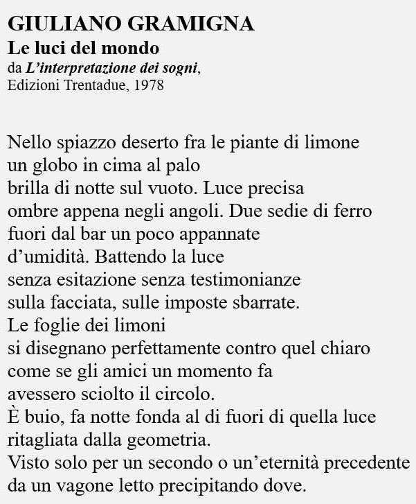 Giuliano Gramigna (31 maggio 1920 – 15 aprile 2006) è stato per molto tempo, a partire dal 1952, critico letterario del «Corriere della Sera», ma già in precedenza aveva lavorato nel campo del giornalismo («Tempo», «Settimo Giorno», «Corriere d’informazione»).