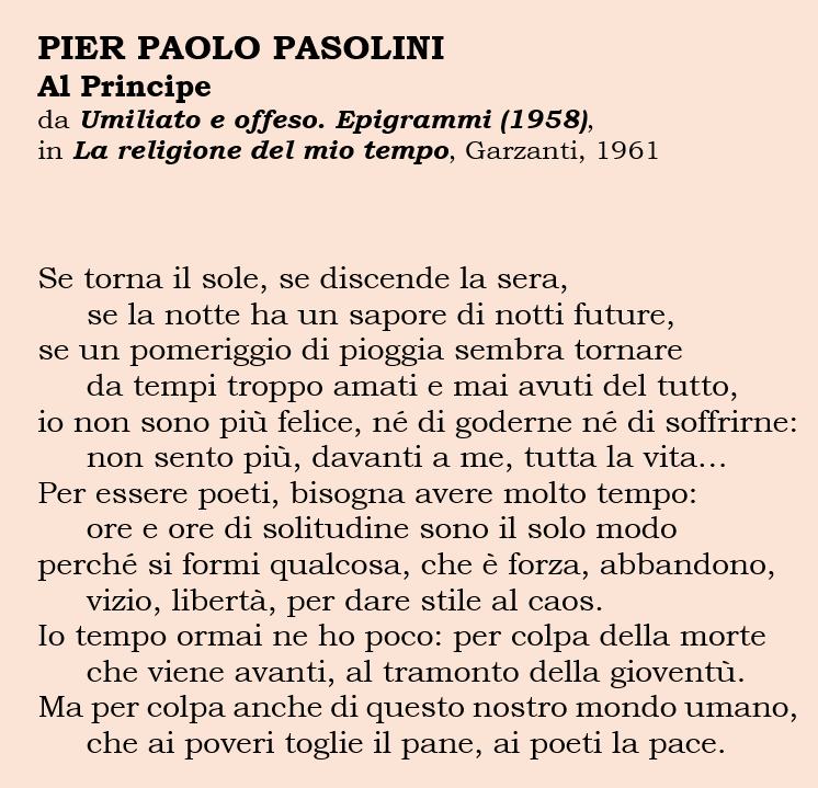 Com’è noto, Pasolini è stato autore anche di epigrammi (genere poco praticato nella poesia italiana del Novecento, almeno in queste forme: ma c’è Fortini, certo, e chi altri?).