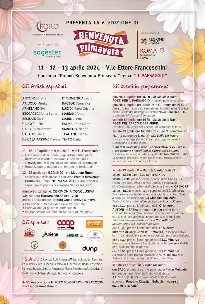 Nell’ambito della VI edizione della Rassegna “Benvenuta Primavera” 2024 in via Meuccio Ruini – Roma Colli Aniene allettante programma letterario: