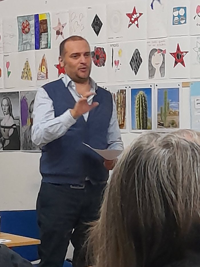 Claudio Damiani ha numerose pubblicazioni di poesia al suo attivo e nel 2022 ha vinto il Premio Viareggio Rèpaci con il libro “Pima di nascere”. Lo scorso venerdì (13 marzo 2026) è stato ospite dell’Associazione La Primula con il libro “Rinascita” e altre letture poetiche.